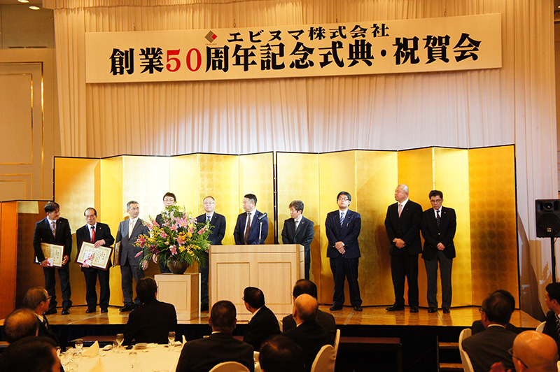 本日ここに創業50周年を迎えることが出来ました。これも一重に地元の皆様、得意先様、仕入先様の温かいご支援、ご協力の賜物によるものと深く感謝申し上げます。